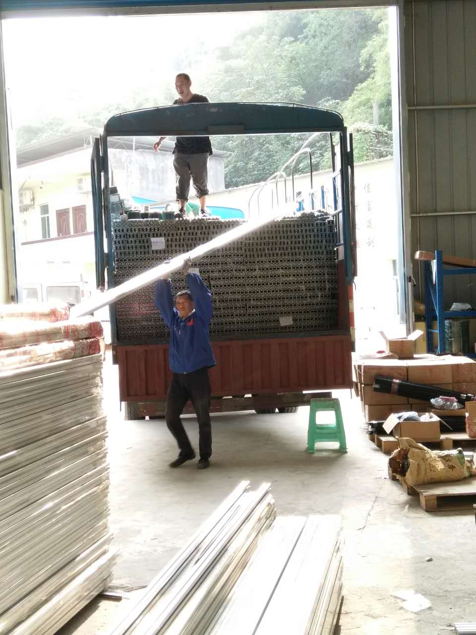 匯利興戰(zhàn)士齊心協(xié)力一同卸下鋁型材,滿大車的鋁型材轉(zhuǎn)間就轉(zhuǎn)移至倉庫。(團結(jié)就是力量)