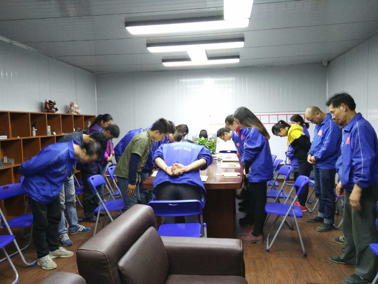 會議召開前夕,全體員工向企業(yè)三道(商道、孝道、人道)行三鞠躬