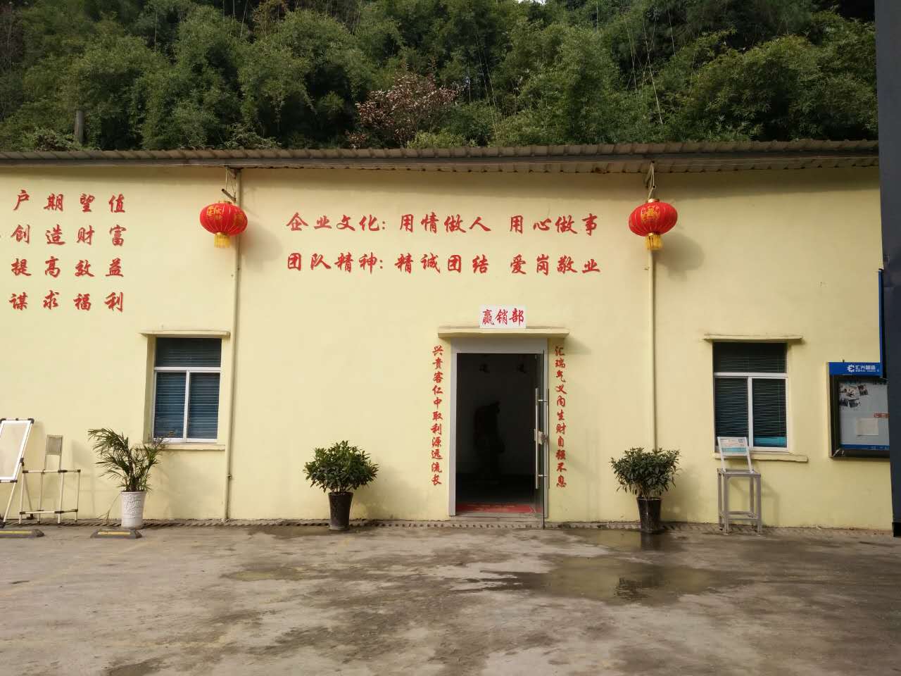 張燈結(jié)彩,彩旗飄飄-好山好水好地方好彩頭 陽(yáng)光普灑在匯利興墻面上紅彤彤的燈籠兒掛立兩旁彰顯著匯利興紅火的前方,進(jìn)而也突顯著匯利興企業(yè)文化與團(tuán)隊(duì)精神同時(shí)也在溫暖著匯利興人的心 精神抖擻的匯利興人在認(rèn)真的工作 綠草青竹有著無(wú)顏六色的彩帶與氣球兒的點(diǎn)綴成為了一顆璀璨耀眼的明珠,一個(gè)“世外竹源”。