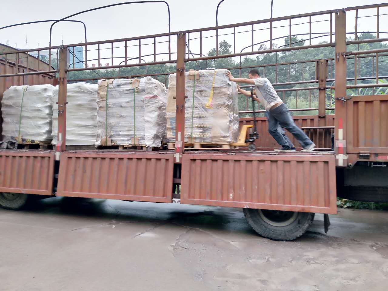 圖中是匯利興家人正在裝運(yùn)滾筒 圖中是匯利興家人正在搬卸鋁型材 匯利興家人們始終如一、團(tuán)結(jié)一致、敬職敬業(yè),他們齊心協(xié)力地、小心翼翼用心呵護(hù)他們的心血之作,正如作家小心翼翼地呵護(hù)自己所寫(xiě)的書(shū)一樣。因?yàn)檫@是他們奮斗后的結(jié)果、是他們努力后的收獲,雖早已汗流浹背但為了能使?jié)L筒整齊擺放在車(chē)上,他們拖著疲憊的身子使用自洪荒之力將滾筒擺放整齊,盡力做到最好。 圖中匯利興家人使用自洪荒之力將滾筒擺放整齊