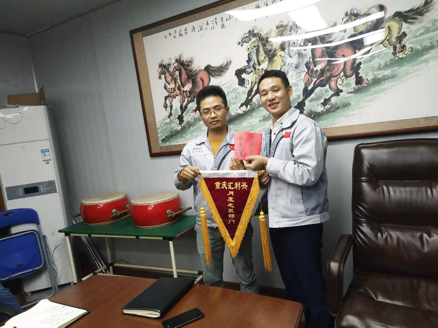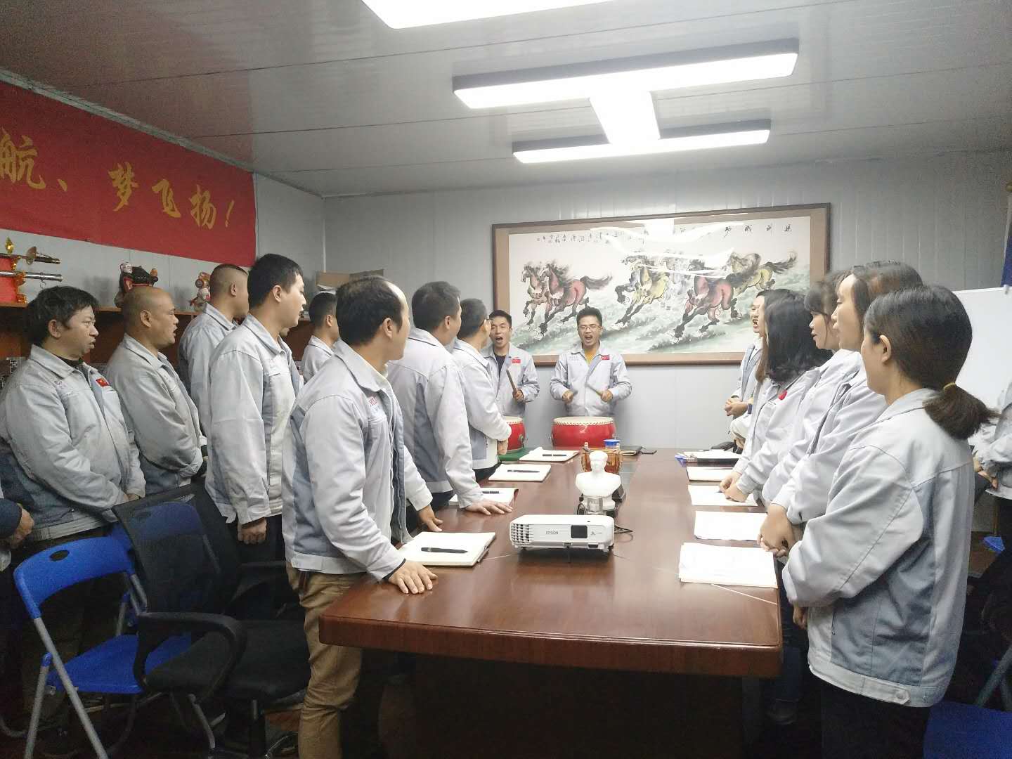 依次估稱簽到入場(chǎng) 會(huì)議召開(kāi)前,大家依次對(duì)企業(yè)三道(人道、孝道、商道)行三鞠躬,并督促我們應(yīng)時(shí)刻感謝自己、感謝父母及我們的合作伙伴;同時(shí)進(jìn)一步也敲響了匯利興士氣鼓,士氣比武器更重要進(jìn)而不斷的鼓舞自己鞭策自己,隨后會(huì)議正式開(kāi)始。 敲擊士鼓,士氣比武器更重要 會(huì)上,首先由張副總對(duì)十月份做相應(yīng)總結(jié),談到部門(mén)之間的配合度及個(gè)人對(duì)于崗位的付出,并表示隨著時(shí)間的增移我們需加快自己的腳步緊追我們的目標(biāo);其次每月度之星及部門(mén)的選舉和頒發(fā)獎(jiǎng)金;然后胡總做會(huì)議的總結(jié),談到各部門(mén)及先進(jìn)個(gè)人的年度總結(jié)進(jìn)而也盼望及希望每個(gè)人能更加努力、用心拼搏并在夢(mèng)想及目標(biāo)的道路上,一路披荊斬棘、奮勇向前毫不退縮。 張副總發(fā)言講話示意圖 如果說(shuō),有一種力量可以讓人堅(jiān)韌不拔,那便是團(tuán)隊(duì)的力量;如果說(shuō)有一種力量可以讓人心頭一暖,那便是團(tuán)隊(duì)的力量。大家相聚一起互助友愛(ài)、努力奮斗,用最貼切的關(guān)懷及行動(dòng)來(lái)表達(dá)對(duì)同事間的關(guān)愛(ài)和對(duì)工作的付出從未求回報(bào),而他們就是此次榮獲月度之星的“張副總”和月度部門(mén)“銷(xiāo)售部”。在此感謝他們的奉獻(xiàn)及付出同時(shí)在此祝賀他們,進(jìn)而也希望他們?cè)诖撕蟮穆烦躺夏芨优Α?/span> 雙星代表人“張副總”(圖左)與“胡總”(圖右)進(jìn)行合影