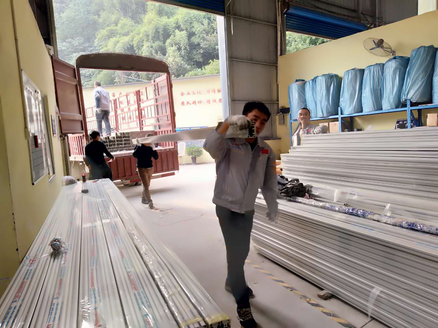 云開霧繞、陽光柔和似乎渲染著匯利興廠區(qū)的一片繁忙景象。滿載著材料的大卡車陸陸續(xù)續(xù)駛向廠內(nèi),鋁型材、精益管、滾筒鋼管等一車又一車,家人們奮不顧身前去搬卸鋁材進(jìn)而更快速的出入貨。雖初晨有些僵手,但家人們依舊有序的工作著,切割鋁材、鉆孔攻牙、生產(chǎn)滾筒等都井然有序、團(tuán)結(jié)一致工作著,進(jìn)而體現(xiàn)了家人們的團(tuán)隊(duì)精神及對(duì)工作的敬職敬業(yè)。然此次到貨鋁材規(guī)格有:HLX-100*118、HLX-3060、HLX-4080、HLX-6060、HLX-3030等,再次迎來黃金采購期,各規(guī)格鋁材及配件應(yīng)有盡有,歡迎咨詢采購?。?! 在寬曠的車間來回跑動(dòng),鏗鏘有力的他們每一個(gè)動(dòng)作都充滿著活力;無論風(fēng)雨他們依舊朝氣蓬勃、精神煥發(fā)的奮斗著。在此,感謝你們的付出與努力“你們辛苦了”,加油!今日為更全面的滿足廣大客戶對(duì)各材料的采購,我司大批量材料到貨且種類繁多,品種齊全,來電咨詢吧!熱線電話:023-68617887