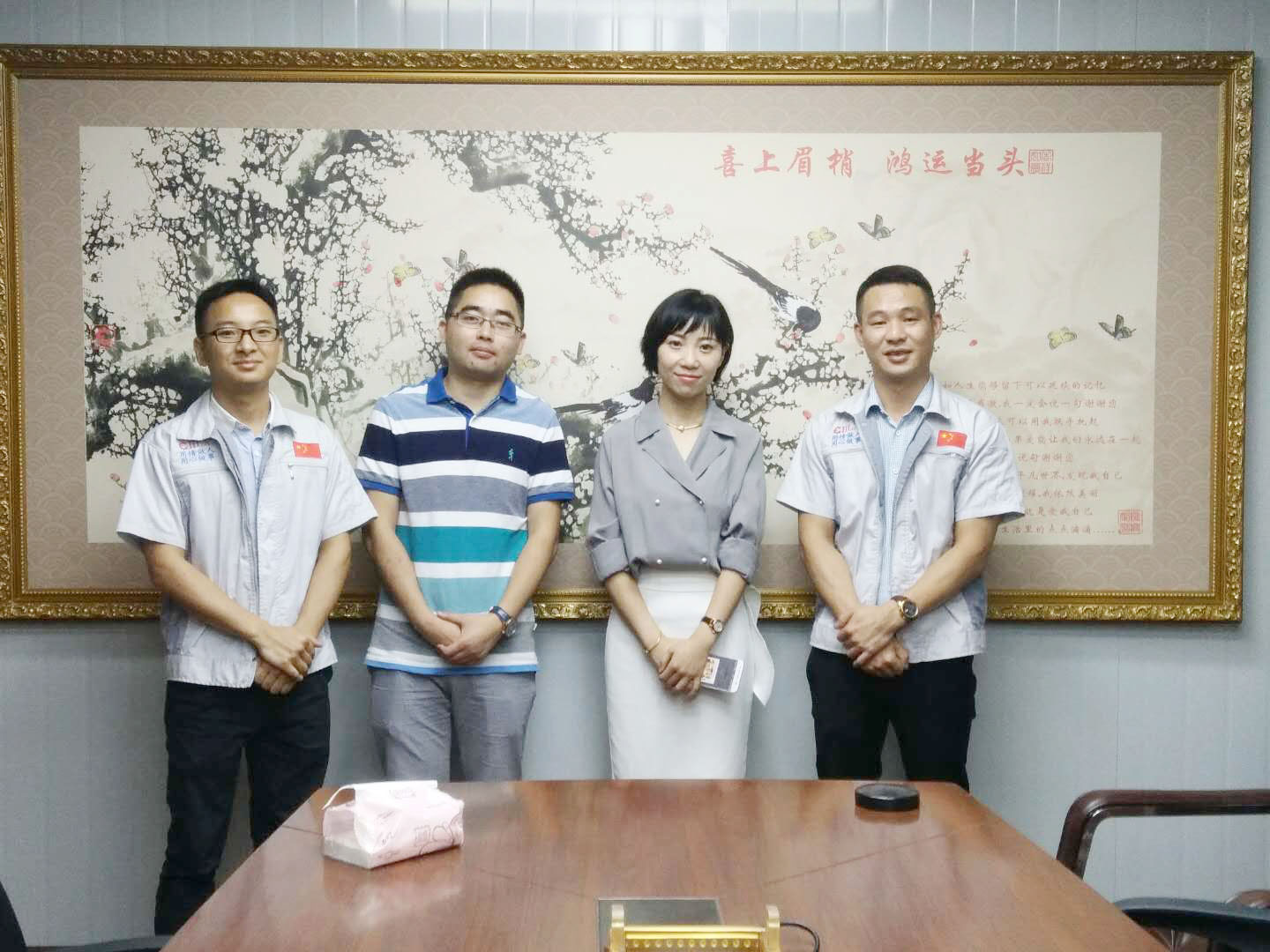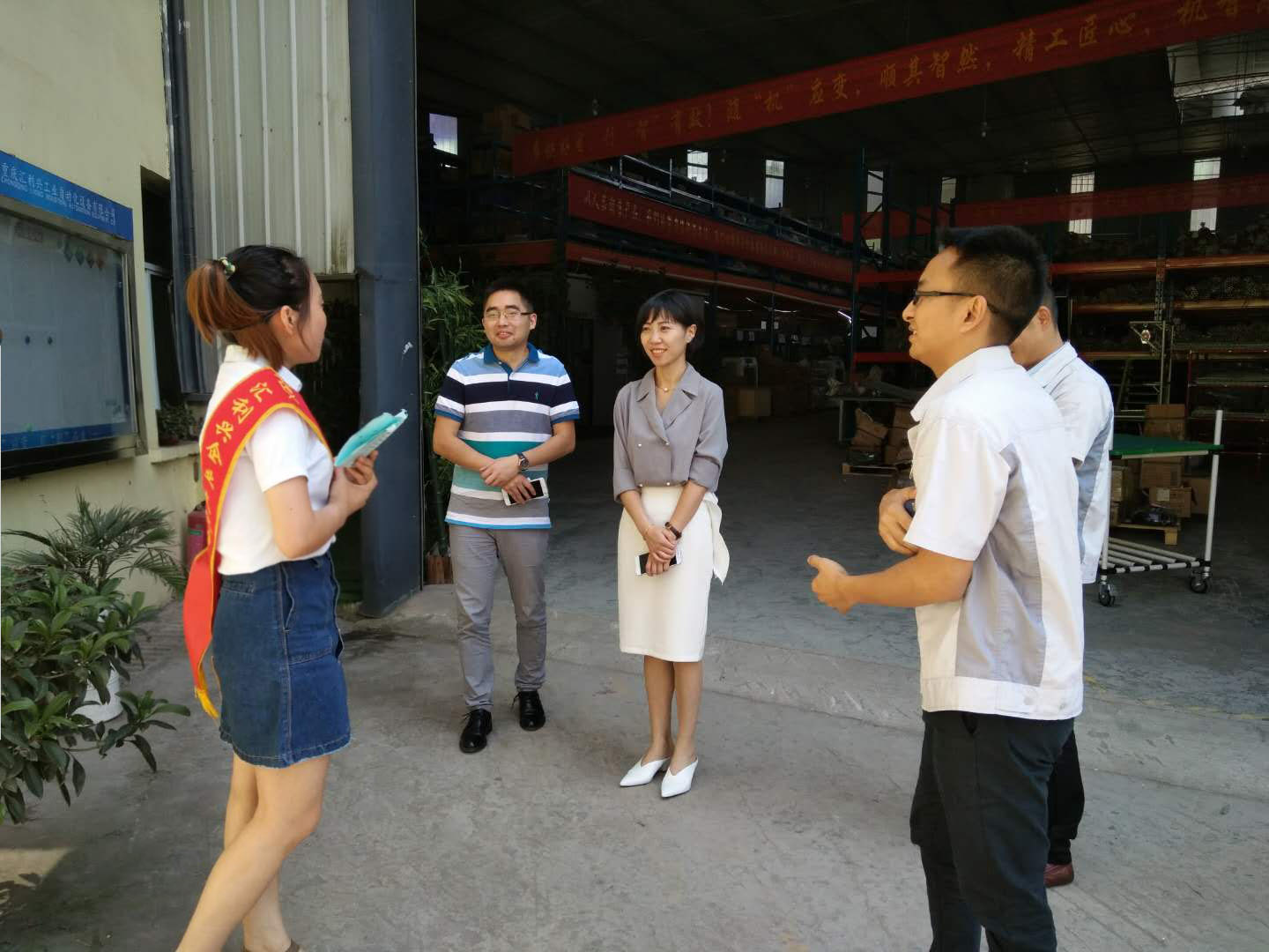 6月5日,蘇州某供應(yīng)鏈管理有限公司制造副總?cè)~蓮女士、四川某物流設(shè)備有限公司技術(shù)席禮江先生同時(shí)蒞臨匯利興重慶公司。匯利興重慶公司胡偉路總經(jīng)理一行熱情接待了兩方來(lái)客。 胡偉路總經(jīng)理一行與客人們合影圖 竹破四方遙來(lái)客,舉杯不敗古來(lái)人。兩方客人與胡總經(jīng)理一同相談甚歡,受邀參觀了解匯利興企業(yè)文化及面貌,由文化大使小石,向客人們一一解說(shuō)匯利興企業(yè)文化,帶領(lǐng)客人參觀了解匯利興廠貌(型材加工區(qū)、配件倉(cāng)儲(chǔ)區(qū));用客人的一句話總結(jié)匯利興,“種類多、設(shè)備全、加工快、文化好、省成本”,并一度稱贊匯利興濃厚的文化底蘊(yùn)及過(guò)硬的行業(yè)技術(shù),表示此次來(lái)訪,受益匪淺。至此,邀請(qǐng)客人在“喜上眉梢、鴻運(yùn)當(dāng)頭”錦上添花,寓意友誼長(zhǎng)存、攜手共進(jìn)。 文化大使小石向客人介紹公司文化圖 匯利興,作為掛牌企業(yè),自建18畝工業(yè)園、具有18年的行業(yè)老資歷、56項(xiàng)自主新專利,并與各大品牌企業(yè)相繼交流合作,業(yè)界擁有高贊譽(yù)的品牌口碑,不僅吸引了很多國(guó)內(nèi)客戶,還吸引了不少國(guó)外客戶。在此,感謝每一位客人對(duì)匯利興的認(rèn)可及鼓勵(lì),謝謝!匯利興定不負(fù)眾望!披荊斬棘、向前攀登,為配件行業(yè)再創(chuàng)奇跡!