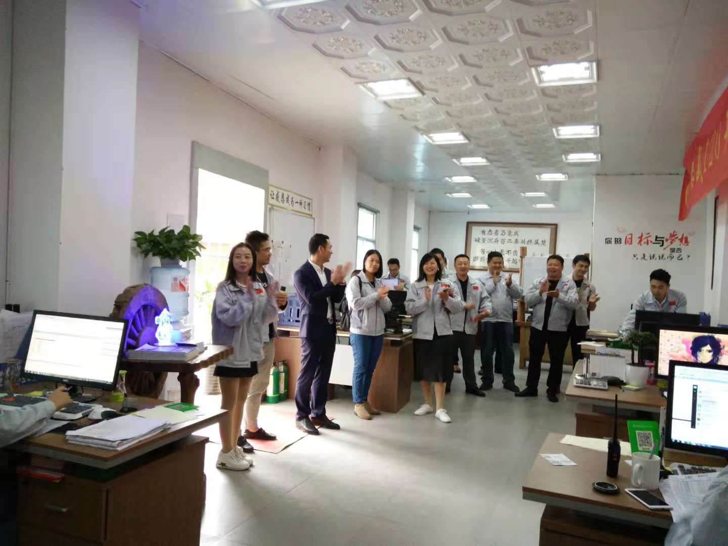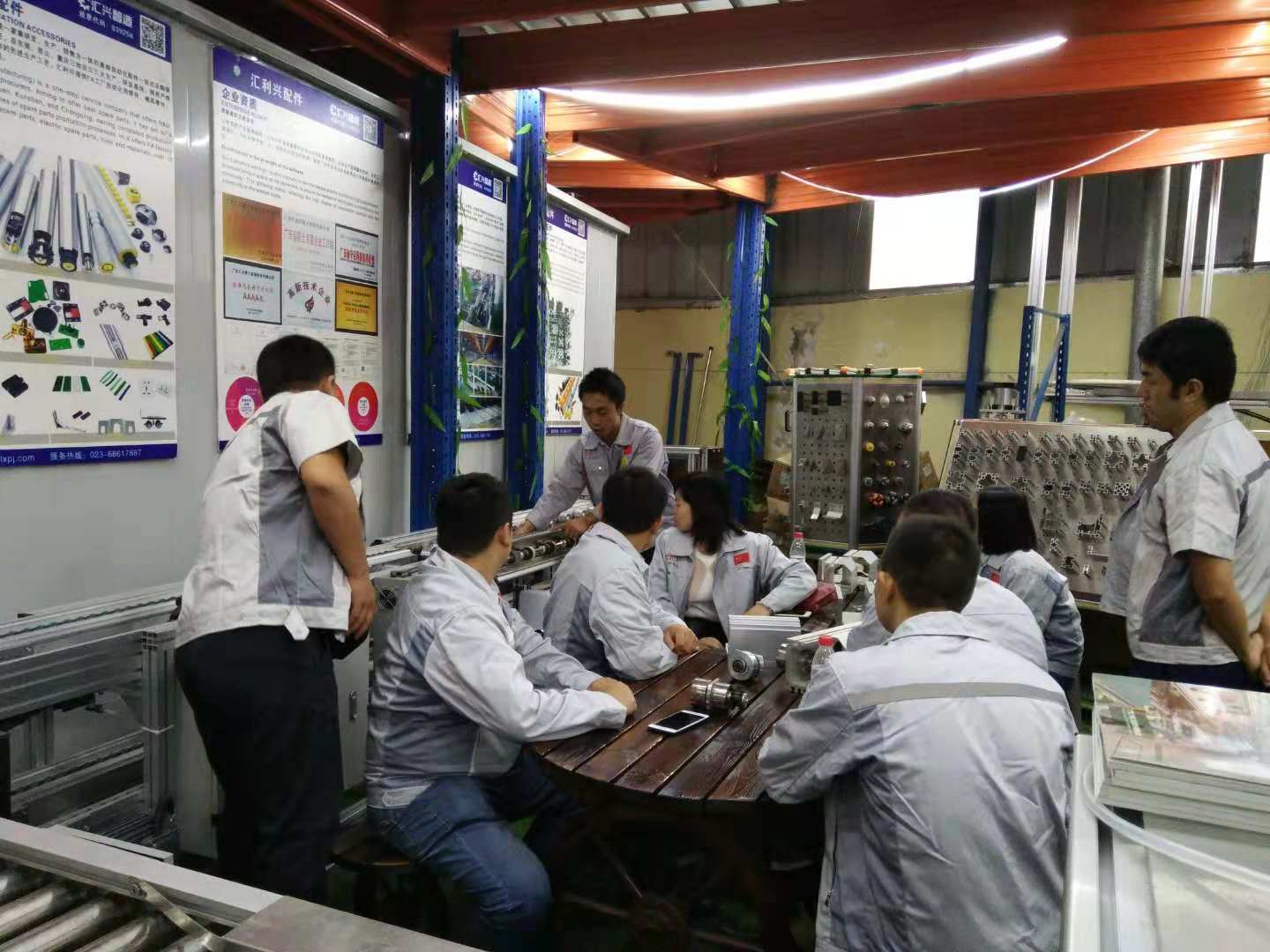 胡偉路總經(jīng)理帶領(lǐng)集團代表一行認識了匯利興(重慶)公司贏銷部的家人們,并陪同集團代表一行參觀了匯利興(重慶)公司型材長材區(qū)及配件區(qū),介紹了重慶公司的新利器-型材切割機,了解了重慶子公司一系列作業(yè)機械同時也參觀了9月份的參展線體,并現(xiàn)場相互交流了一些新創(chuàng)意、新想法,并表示匯利興(重慶)公司一系列文化及規(guī)模體系是值的稱贊得!同時胡偉路總經(jīng)理表示,重慶公司的文化完全是授予集團公司的熏陶,在現(xiàn)有的文化上又創(chuàng)新了一些具備匯利興(重慶)公司的文化及作業(yè)體系,因此在廠容廠貌的結(jié)構(gòu)上有些許新穎。  隨后,集團代表在胡偉路總經(jīng)理的引導下參觀了重慶公司的匯利興學校后,大家齊聚一堂對相關(guān)技術(shù)問題相互進行了深入的溝通,大家一致認為孔子的這句“學而不思則罔,思而不學則殆”很是受用,因為只有不斷的努力學習,接觸新的想法及事物才能走在時代的前言上,才能不落后。