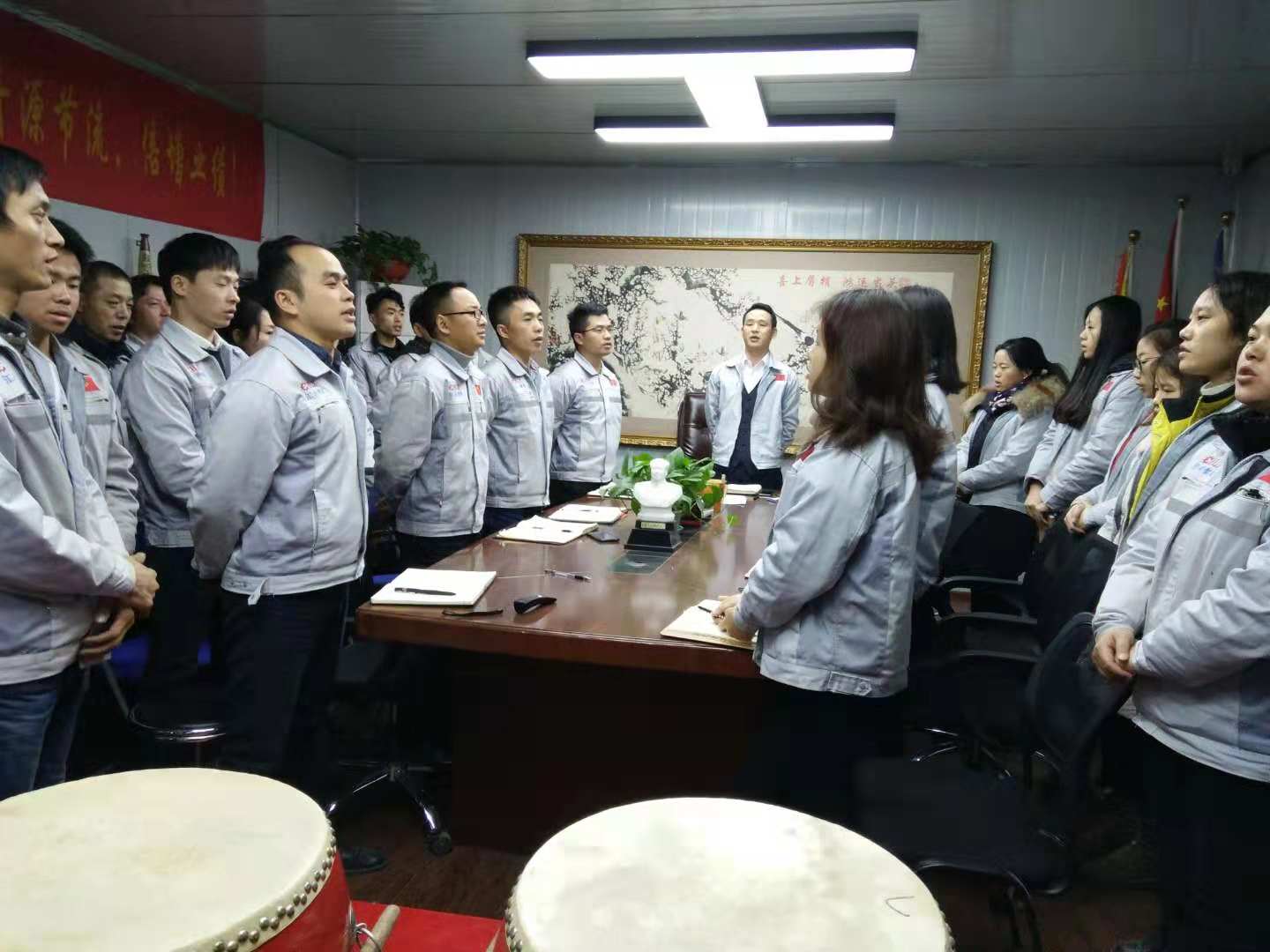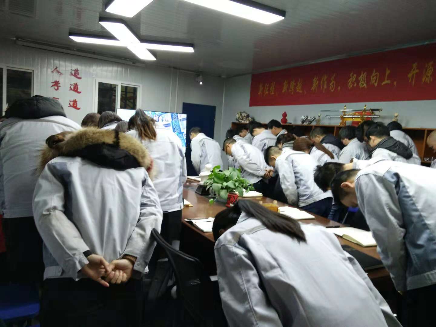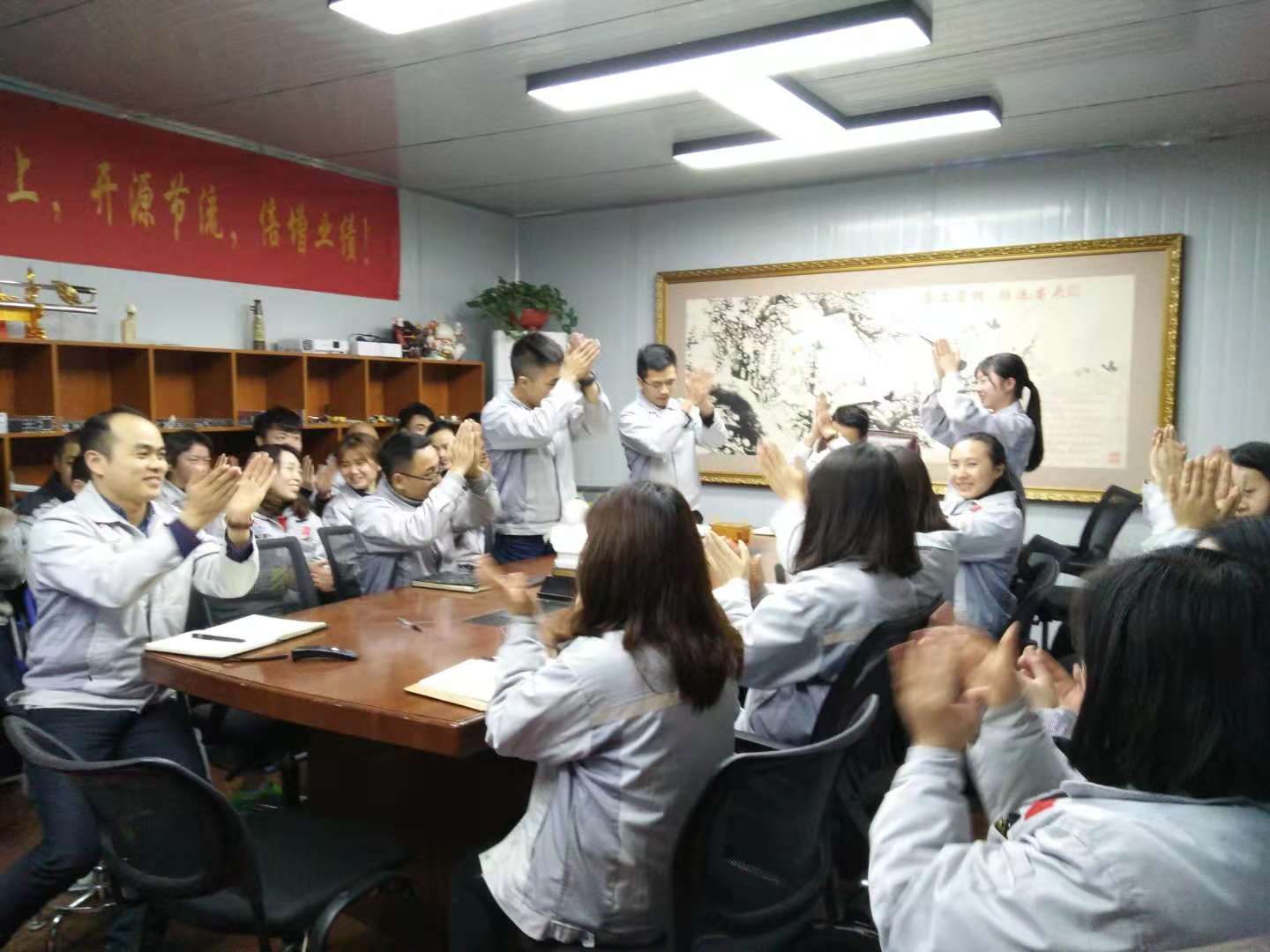 企業(yè)三道“孝道、商道、人道”行三鞠躬 擊士氣鼓,士氣比武器更重要 會(huì)議第一項(xiàng)議程:嘉獎(jiǎng)環(huán)節(jié)-優(yōu)秀部門,優(yōu)秀員工評(píng)選。本月度優(yōu)秀部門“物控部”,月度之星“熊學(xué)斌”,他們用行動(dòng)告訴我們什么是阿甘精神,什么是責(zé)任,在此祝賀他們同時(shí)也感謝他們的辛勤付出,感謝大家的付出,相信在僅有的2018年里,我們定會(huì)創(chuàng)造奇跡。 月度之星和優(yōu)秀部門獲得者合影圖 第二項(xiàng)議程:由我們的行政主管陳香草宣導(dǎo)倡議書,勉勵(lì)大家:“付出不一定有收獲,但不付出是一定沒(méi)有收獲”,其次感謝大家在工作崗位上的無(wú)私奉獻(xiàn),號(hào)召大家在2018的短短18天里面繼續(xù)努力,勁往一處使,心往一起靠,全力以赴,不忘初心、砥礪前行。同時(shí)宣導(dǎo)公司年會(huì)籌備事宜,并倡導(dǎo)大家踴躍參與,辦一個(gè)熱熱鬧鬧與眾不同的年會(huì)。 會(huì)議圖景一 第三項(xiàng)議程:胡偉路總經(jīng)理作會(huì)議總結(jié)及未來(lái)展望。會(huì)上,胡偉路總經(jīng)理提到“三心二力”,對(duì)自己的信心,跟進(jìn)客戶的耐心,拿下訂單的決心,對(duì)規(guī)矩的執(zhí)行力,團(tuán)隊(duì)協(xié)作的戰(zhàn)斗力;希望大家在最后的18天里以奉獻(xiàn)自身的力量,自身協(xié)作能力全力沖刺,完成好每一份訂單。在2018的最后一個(gè)月請(qǐng)各個(gè)部門主管做好總結(jié)與反思,用最大的力量助力公司,為我們的2018畫上一個(gè)完美的句號(hào)。 會(huì)議圖景二 最后,全體匯興人起立,整肅衣冠,眾志成城齊喊“為夢(mèng)想沖刺,我是匯利興的一名忠誠(chéng)戰(zhàn)士”,整個(gè)會(huì)場(chǎng)環(huán)繞著吶喊聲,現(xiàn)場(chǎng)激情澎湃、士氣高昂、振奮人心。
