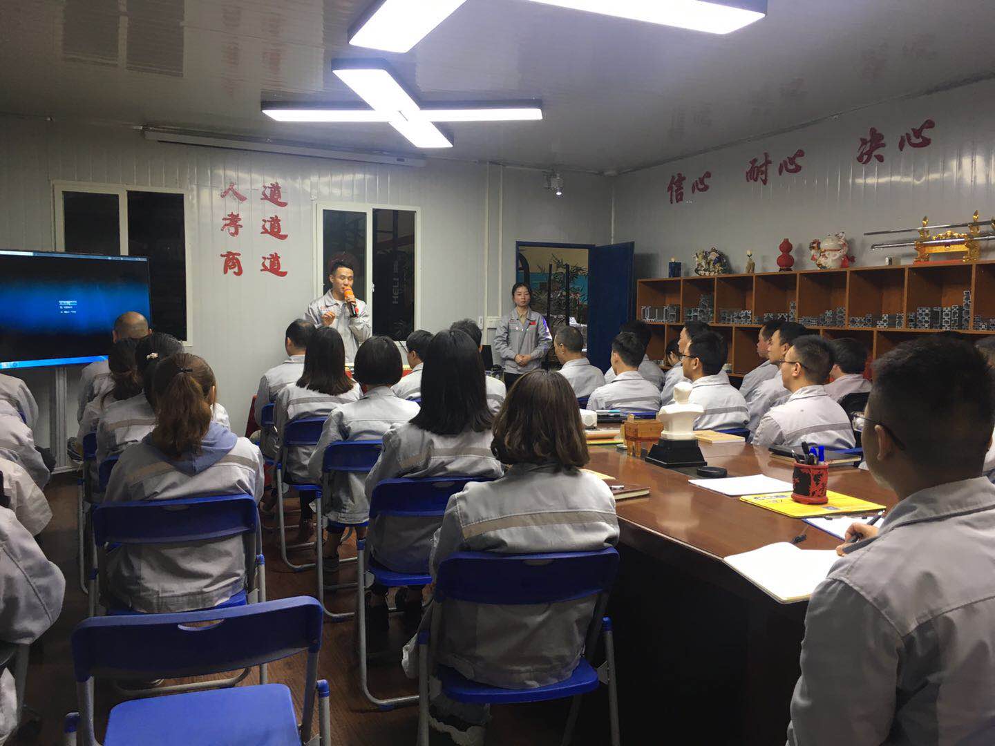 會議第三項議程,新員工入職儀式。由我們常務(wù)副總張總親自為我們新員工頒發(fā)紀念品。公司自成立以來,一直加大對新鮮血液的注入同時也非常注重人才的培養(yǎng)和團隊的建設(shè),為每個人的發(fā)展都提供了寬廣的空間同時匯利興也是一個溫暖的大家庭,大家積極向上,互幫互助,團結(jié)友善。