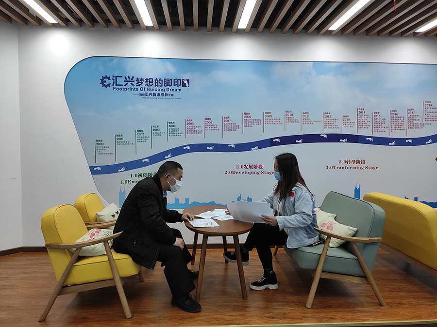 目前復(fù)工35人全部各就其位,與時(shí)間賽跑,爭(zhēng)分奪秒;來(lái)來(lái)回回穿梭在辦公場(chǎng)所內(nèi),與同事擦肩而過,穿行的急迫感仿佛疫情早已遠(yuǎn)去,留下的是這份工作的熱情與激情。一個(gè)個(gè)平凡的身影,在面對(duì)疫情前,他們選擇了勇敢,選擇一路向前;在工作面前,他們選擇了擔(dān)當(dāng),用責(zé)任詮釋著平凡但不平庸的一天,用笑容渲染著每位認(rèn)真工作的匯興人。