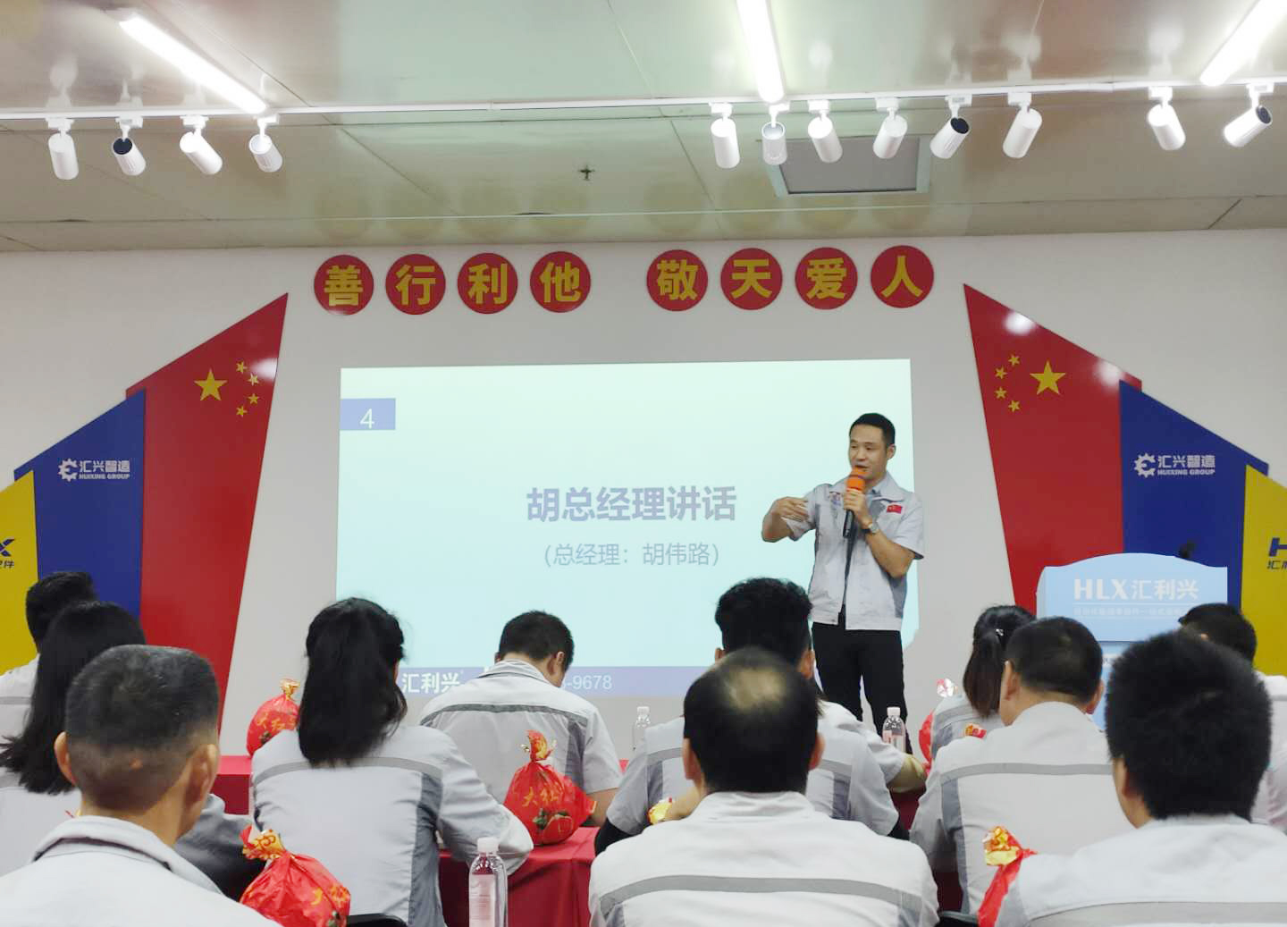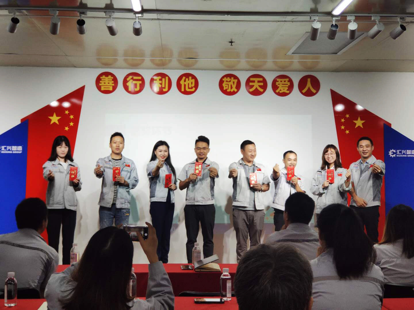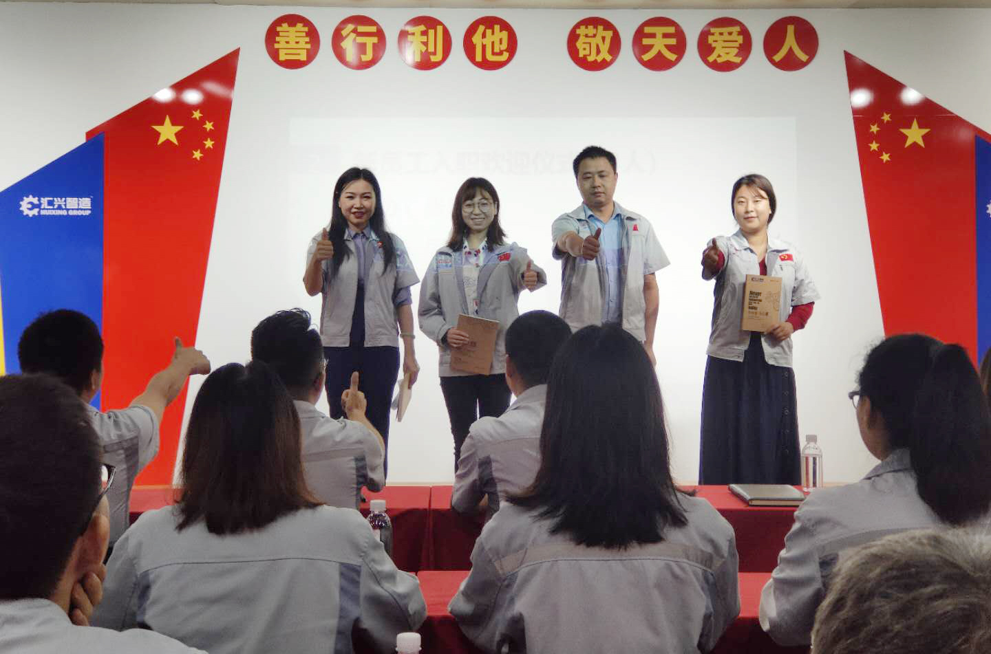2020年9月22日8點(diǎn),匯利興西南工廠全體員工在匯利興學(xué)校召開(kāi)8月月度會(huì)議,由事務(wù)中心主管陳香草主持。 會(huì)議前由二位核心高管擊士氣鼓,鼓舞匯利興奮勇前進(jìn),現(xiàn)場(chǎng)鼓聲震天,士氣如虹。 會(huì)議第一項(xiàng)議程,企業(yè)文化的展示。全體匯興人整肅衣冠對(duì)匯興人倍加推崇的“三道文化”(孝道、商道、人道)鄭重地鞠躬,莊嚴(yán)宣誓企業(yè)愿景:“成為行業(yè)優(yōu)秀的智能自動(dòng)化產(chǎn)業(yè)鏈集成服務(wù)商”,企業(yè)使命:做受尊敬的好人,造受尊敬的產(chǎn)品,辦受尊敬的企業(yè),建受尊敬的平臺(tái),企業(yè)精神“用情做人、用心做事”,團(tuán)隊(duì)精神“忠誠(chéng)團(tuán)結(jié)、勤奮進(jìn)取”,工匠精神:創(chuàng)于手、精于工、智于器、匠于心、品于行,行為準(zhǔn)則:口中有德、目中有人、手中有技、心中有愛(ài)、行中有善,職業(yè)準(zhǔn)則:對(duì)工作熱臉、對(duì)同事笑臉、對(duì)錯(cuò)誤紅臉、對(duì)浪費(fèi)黑臉、對(duì)榮譽(yù)爭(zhēng)臉。 會(huì)議第二項(xiàng),新員工入職歡迎儀式。企業(yè)的發(fā)展注定離不開(kāi)新鮮血液的注入,新的活力的輸入,由徐總親自為新入員工頒發(fā)紀(jì)念品及新員工代表講話(huà)。