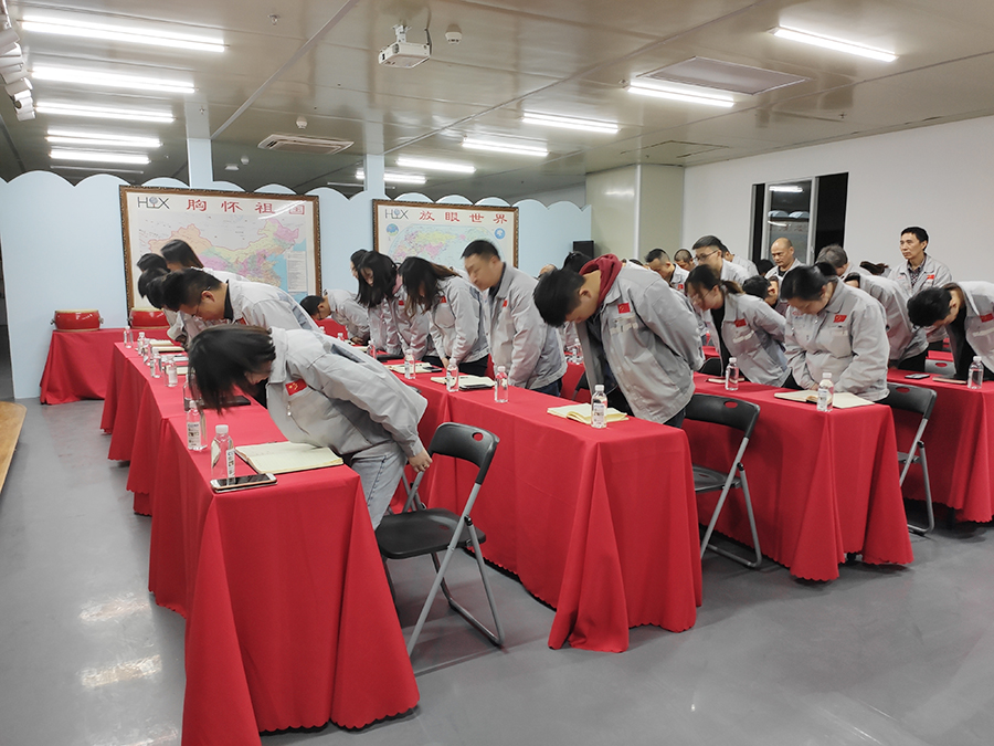 會議前,由二位高管擊響士氣鼓,鼓舞士氣,鼓舞著戰(zhàn)友們奮勇前進,并以這種以評促進、你追我趕的“激勵文化”,潛移默化融于員工的日常工作中,同時也鞭策著員工們不斷爭先創(chuàng)優(yōu),推動企業(yè)發(fā)展內(nèi)生動力,從而形成“我來干、搶著干、努力干”的工作作風(fēng)?,F(xiàn)場鼓聲震天,士氣如虹。 會議第一項,企業(yè)文化展示。全體員工整肅衣冠,對倍加推崇的孝道、商道、人道鄭重鞠躬,莊嚴宣誓企業(yè)愿景:“成為行業(yè)優(yōu)秀的智能自動化產(chǎn)業(yè)鏈集成服務(wù)商”,企業(yè)使命:做受尊敬的好人,造受尊敬的產(chǎn)品,辦受尊敬的企業(yè),建受尊敬的平臺,企業(yè)精神“用情做人、用心做事”,團隊精神“忠誠團結(jié)、勤奮進取”,工匠精神:創(chuàng)于手、精于工、智于器、匠于心、品于行等。