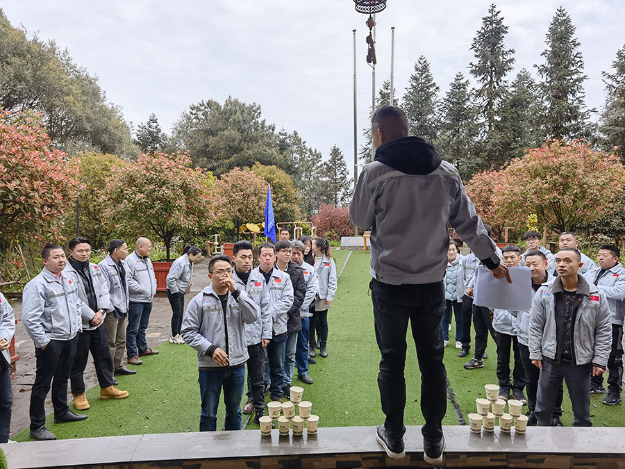 春色旖旎,風(fēng)光正好。帶著喜悅的心情,踏著春天的腳步,聞著春天的氣息,我們一起奔向了詩的遠(yuǎn)方。本次活動(dòng)共計(jì)40余人,9輛戰(zhàn)車,于8點(diǎn)20分出發(fā)前往巴南松木嘴紅楓林,長(zhǎng)長(zhǎng)的車隊(duì)行駛在道路上,宛如一條蜿蜒盤旋的巨龍,甚是可觀。 從廠區(qū)出發(fā),大約1小時(shí)30分我們就達(dá)到當(dāng)?shù)氐霓r(nóng)家樂,大家小憩一會(huì)兒后,正式展開了我們本次的團(tuán)建小游戲,分別是氣球運(yùn)杯子、斗雞、拔河、多人多足等。
