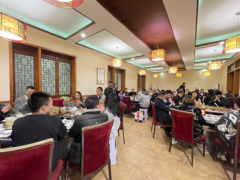 全體員工起立肩并肩,一起唱響“只要我們一起努力,相信我們一定會創(chuàng)造奇跡”,字里行間都激勵著在場每一位員工一定要奮勇前進,歌聲嘹亮,振奮人心! 伴隨時間的推移,也逐漸拉開了會議的下半場,冬天里的第一只羊。公司用最貼心的方式向每一位員工表達著自己的愛,讓大家在寒冷的冬天,不再畏懼寒冷,將暖暖的祝福,送到了大家的眼前,融化在火熱的烤羊里。香味四溢的正宗的草原風味烤全羊,經過專業(yè)師傅的精心烤制,油汁慢慢的從金黃的羊肉中沁出,羊肉也因為火的炙烤而變的金黃,香氣四溢,讓大家一同體驗了大口吃肉大口喝酒的豪放之情,讓大家感受到舌尖上的美食、味蕾的跳動,并訴說著從舌尖到心尖的蛻變,從走胃到走心的真情交流;大家圍坐在一起大快朵頤,席間談笑風生,盡展妙趣,共同舉杯歡慶這美好時刻! 有一種浪漫叫并肩作戰(zhàn),有一種力量叫全力以赴,有一種果敢叫奮不顧身。無論前方等待著什么,我們仍舊拼搏向上,拿出我們最佳的狀態(tài),永遠堅定地向目標邁進,相信所有堅韌不拔的努力,都會得到勝利的回饋!加油!