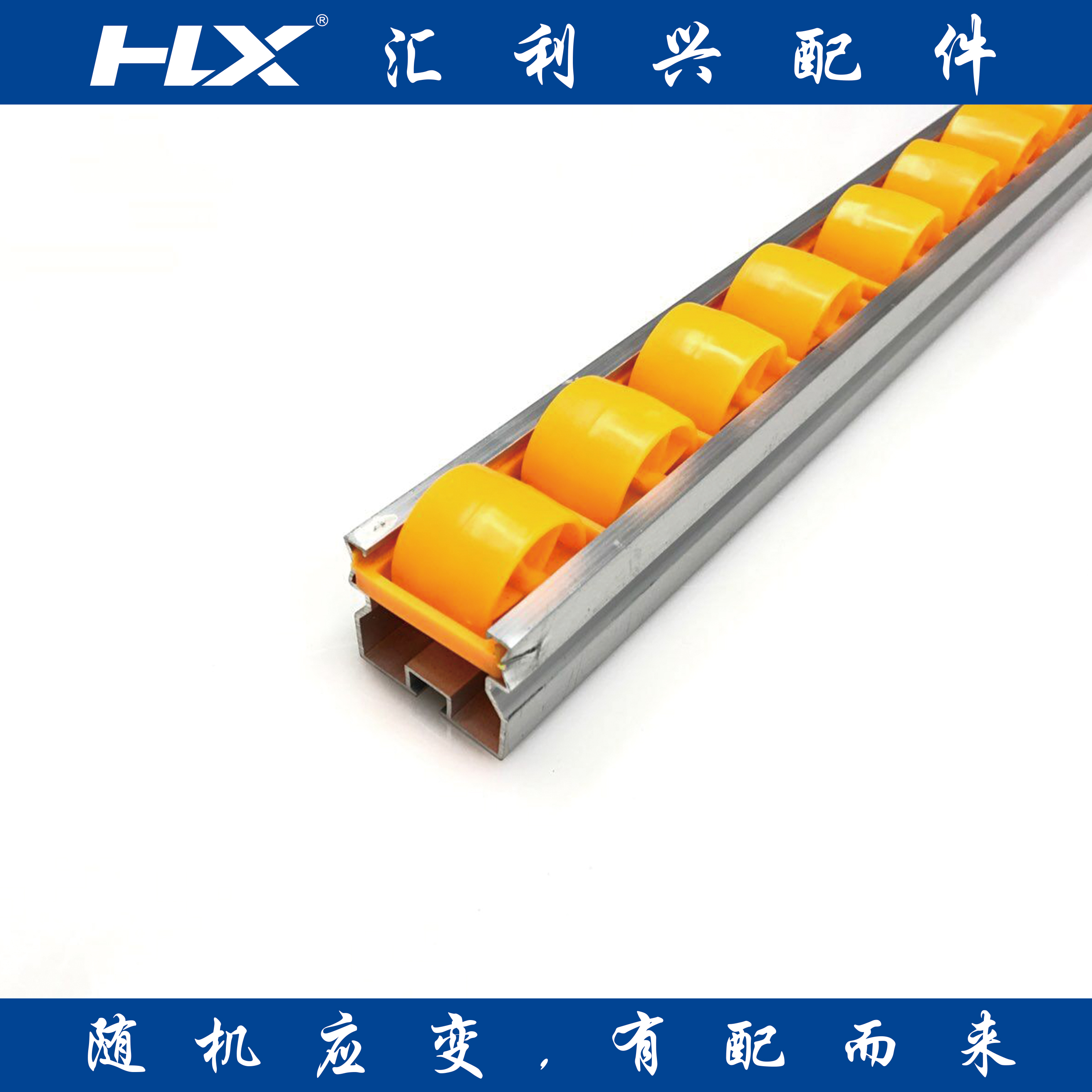 流利條系列:HLX-4A-2鋁合金流利條匯利興產(chǎn)品這流水線配件流利條系列,流利條主要用于輸送、倉儲系統(tǒng)配套產(chǎn)品,可用作滑軌、護(hù)欄、導(dǎo)向裝置、滾動性能好、成本低。滾輪采用高品質(zhì)的熱塑性塑料制成,具有摩擦系數(shù)小、抗沖擊、壽命長、耐酸堿性、耐潮溫等優(yōu)點(diǎn)。當(dāng)貨物重量超過額定的負(fù)荷時,可在一個通道安裝多根流利條。安裝傾斜度取決于重量以及流利架的深度,一般3O~6O(5%~9%)。通常在深度方向上每隔600mm~800mm安裝一根支撐梁以增強(qiáng)流利條的剛度。滾輪顏色可選:黃色,藍(lán)色,白色,黑色等其他顏色。輪距常用為:35mm,45mm 并可以根據(jù)實(shí)際使用情況定尺生產(chǎn)。我司專業(yè)生產(chǎn)鋁全金流利條,載重流利條,板金流利條,鋁全金流利條接頭,板金流利條接頭等流水線配件。 |