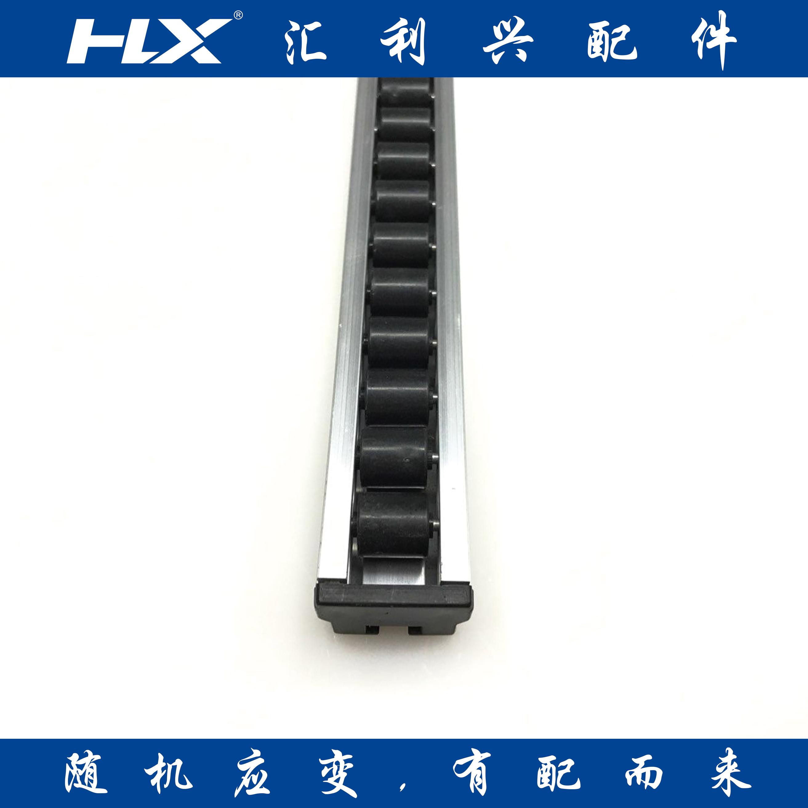 流利條系列:HLX-5A袖珍流利條匯利興產(chǎn)品這流水線配件流利條系列,流利條主要用于輸送、倉儲系統(tǒng)配套產(chǎn)品,可用作滑軌、護欄、導(dǎo)向裝置、滾動性能好、成本低。滾輪采用高品質(zhì)的熱塑性塑料制成,具有摩擦系數(shù)小、抗沖擊、壽命長、耐酸堿性、耐潮溫等優(yōu)點。當(dāng)貨物重量超過額定的負荷時,可在一個通道安裝多根流利條。安裝傾斜度取決于重量以及流利架的深度,一般3O~6O(5%~9%)。通常在深度方向上每隔600mm~800mm安裝一根支撐梁以增強流利條的剛度。滾輪顏色可選:黃色,藍色,白色,黑色等其他顏色。輪距常用為:35mm,45mm 并可以根據(jù)實際使用情況定尺生產(chǎn)。我司專業(yè)生產(chǎn)鋁全金流利條,載重流利條,板金流利條,鋁全金流利條接頭,板金流利條接頭等流水線配件。 |